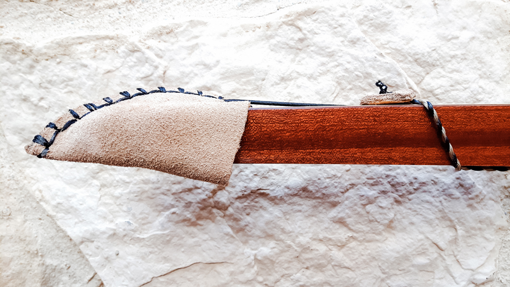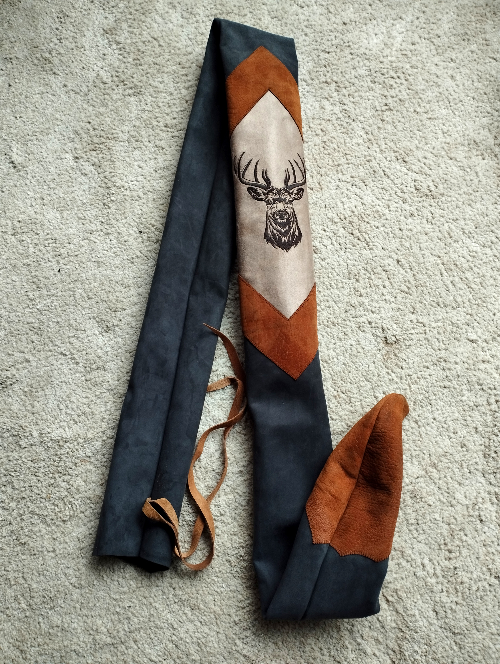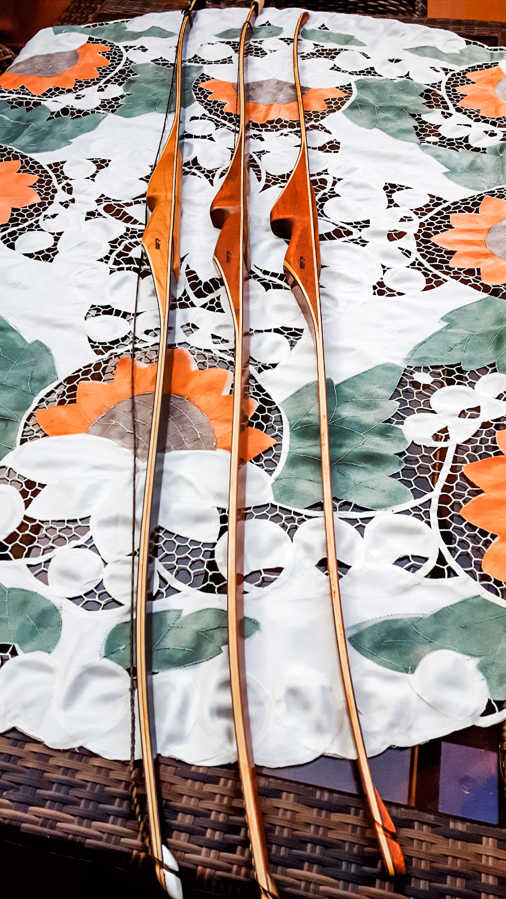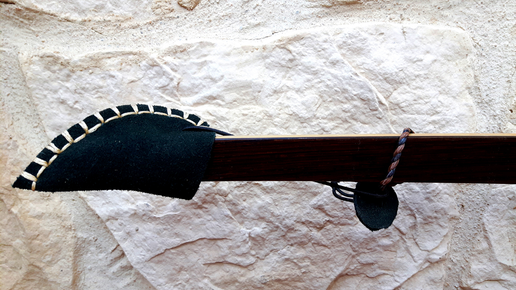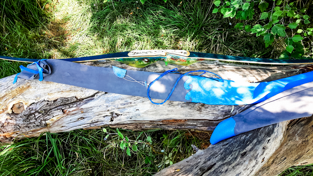 Meine Gattin Ursula macht all unsere Bogensäcke und Sehnenspanner mit Handarbeit.