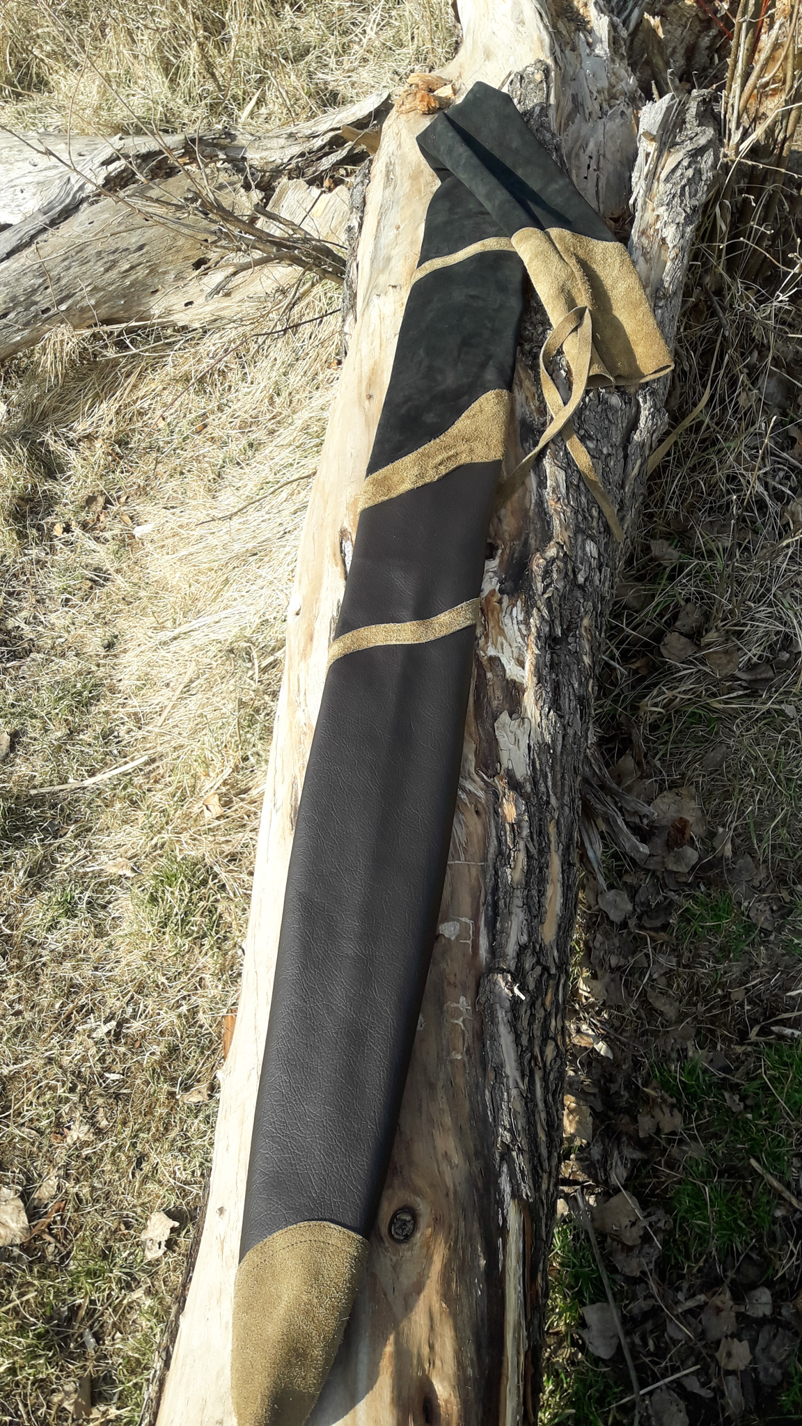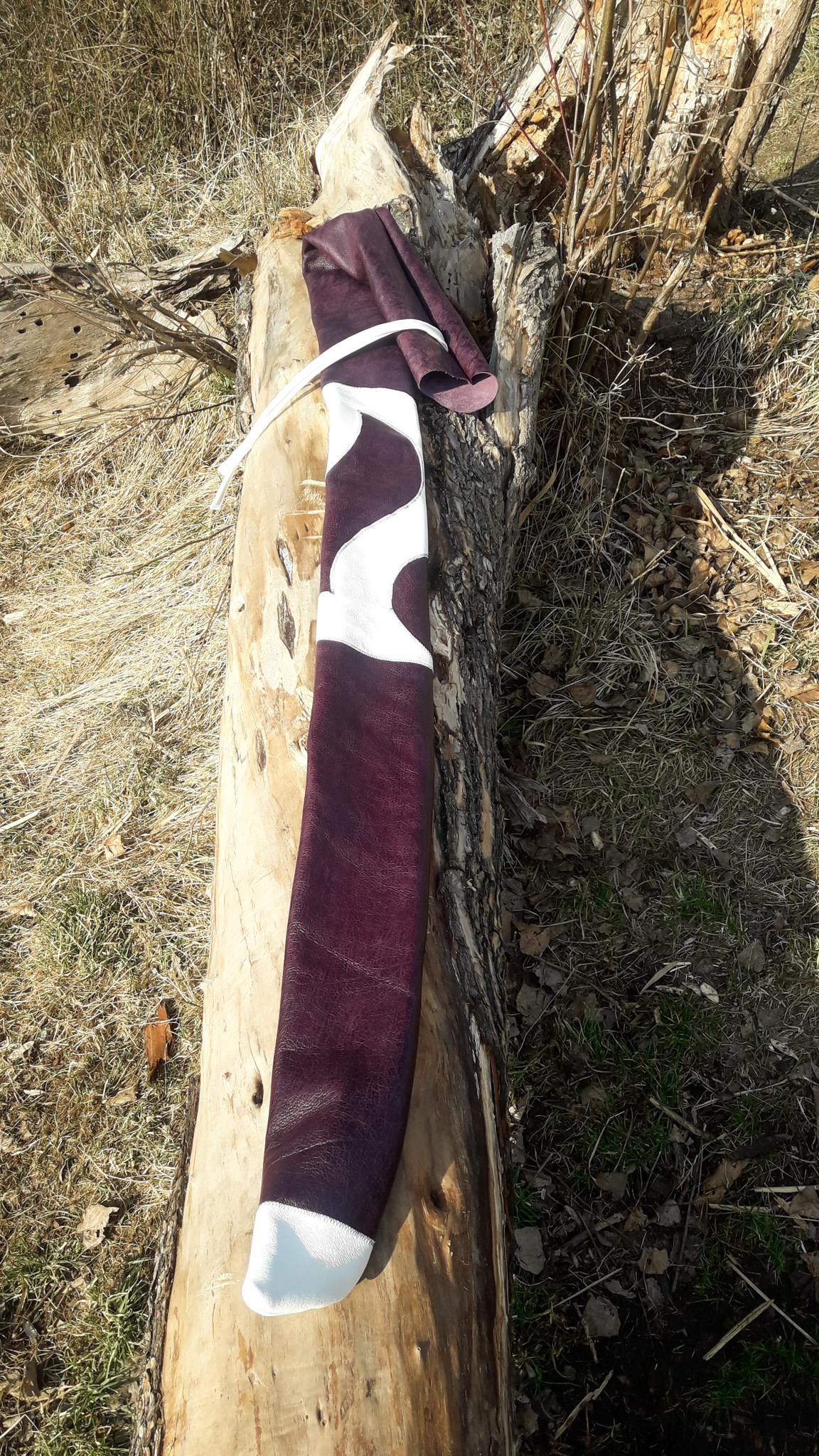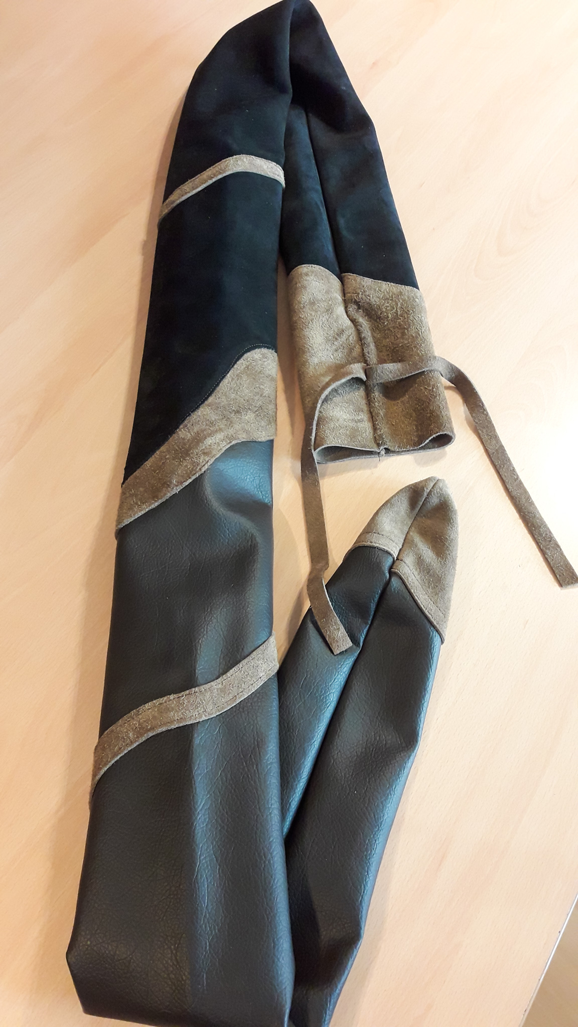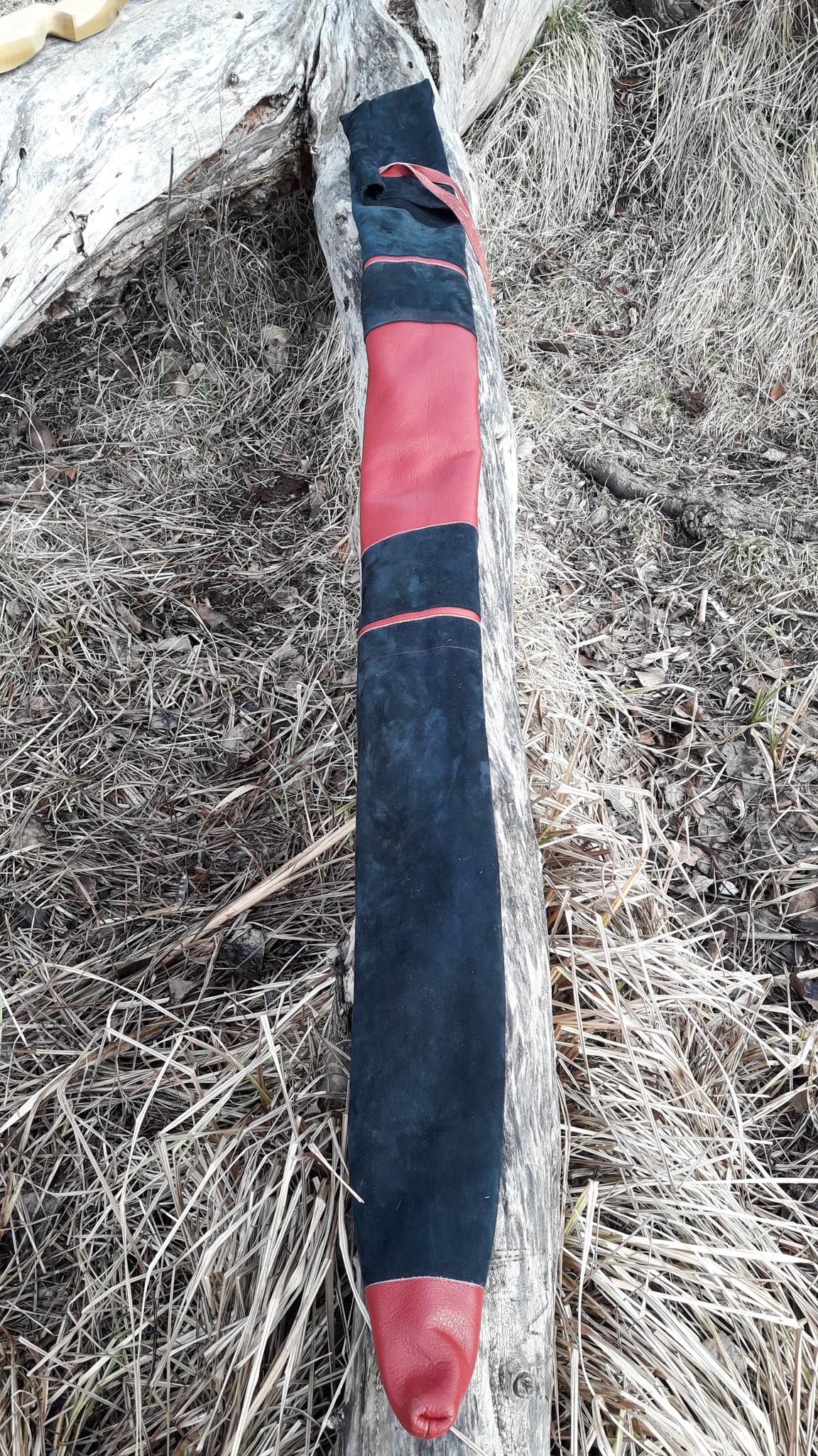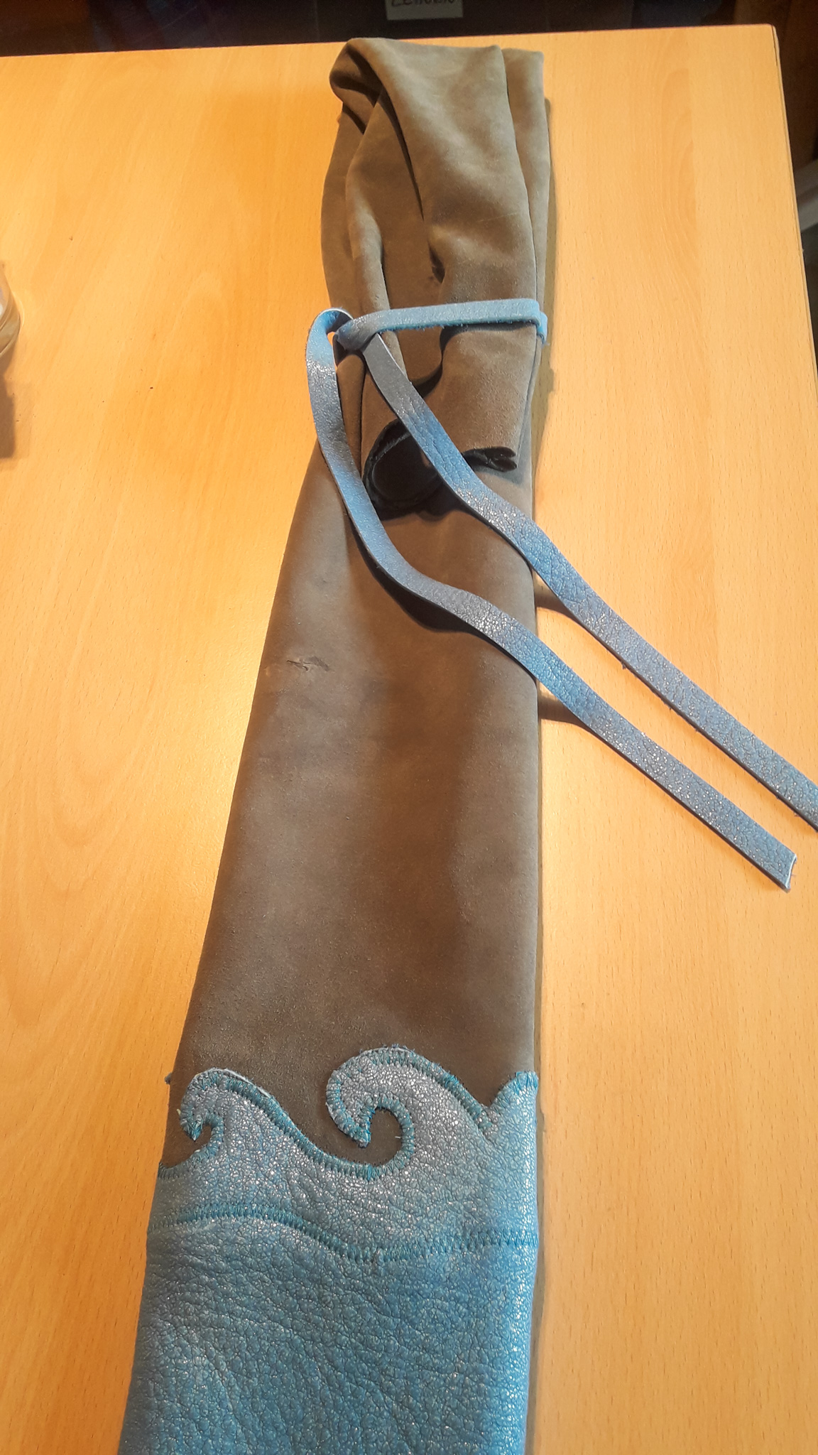 Meine Gattin Ursula macht all unsere Bogensäcke und Sehnenspanner mit Handarbeit.