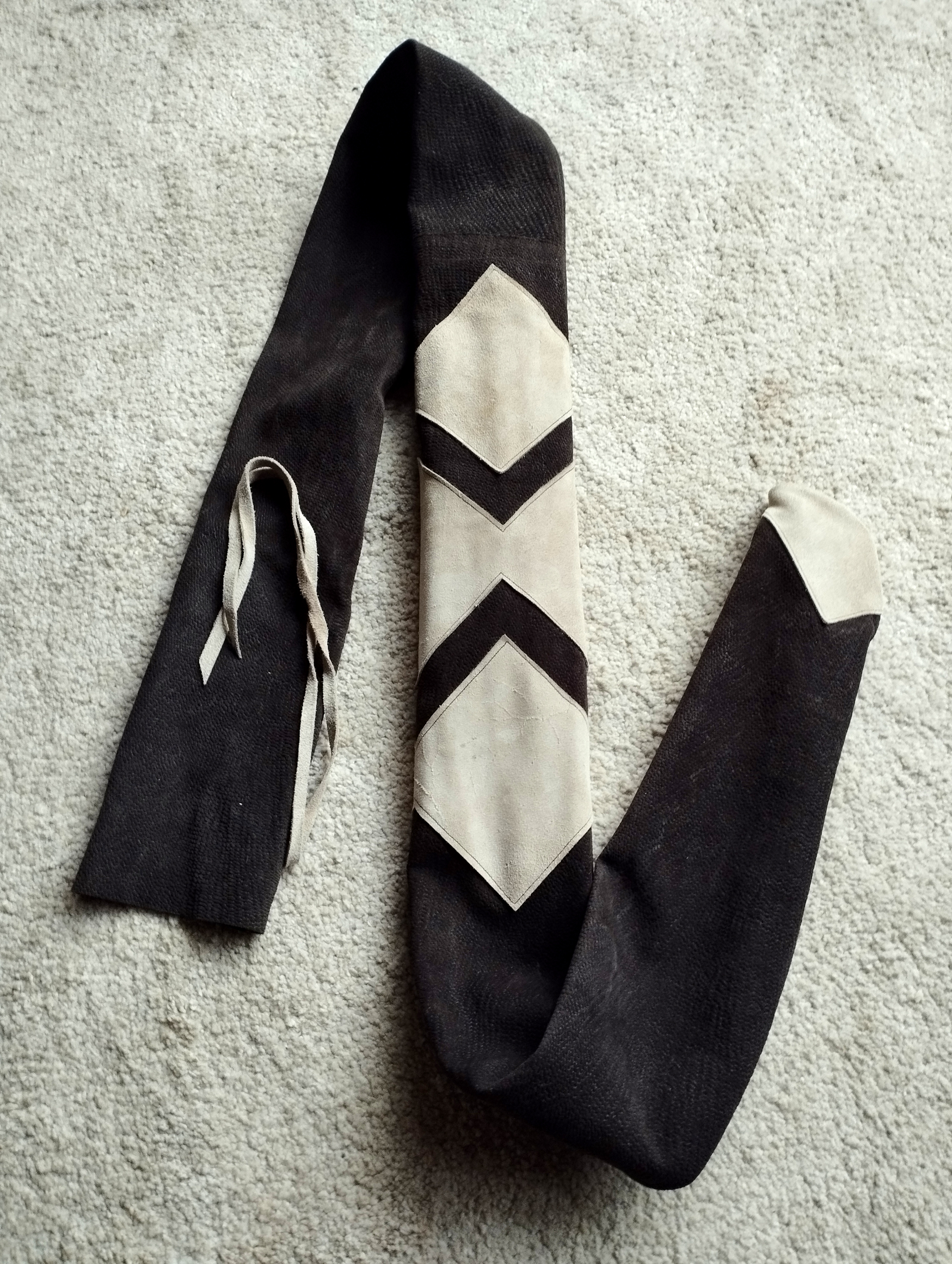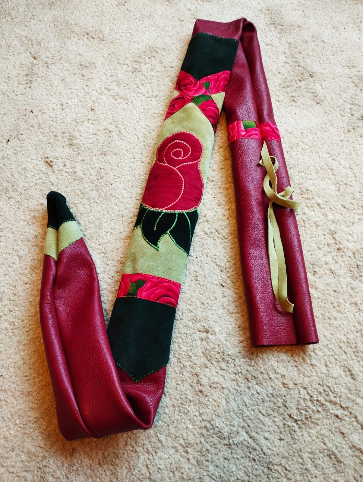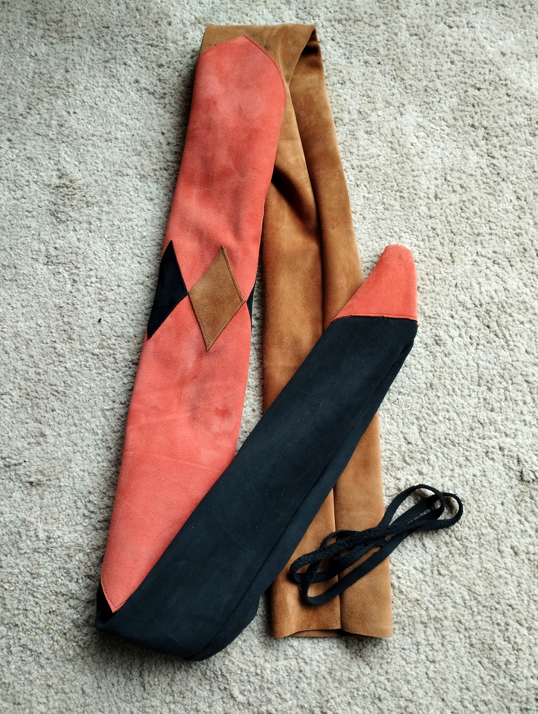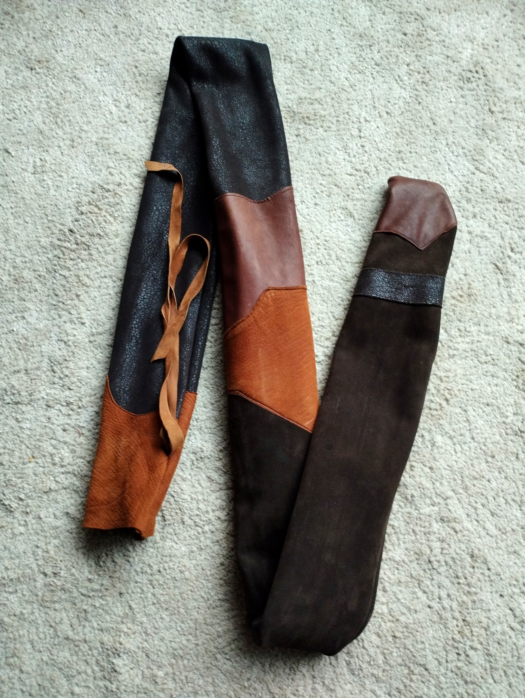 Meine Gattin Ursula macht all unsere Bogensäcke und Sehnenspanner mit Handarbeit.
