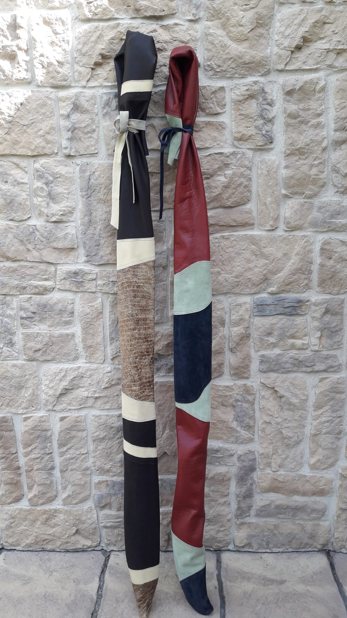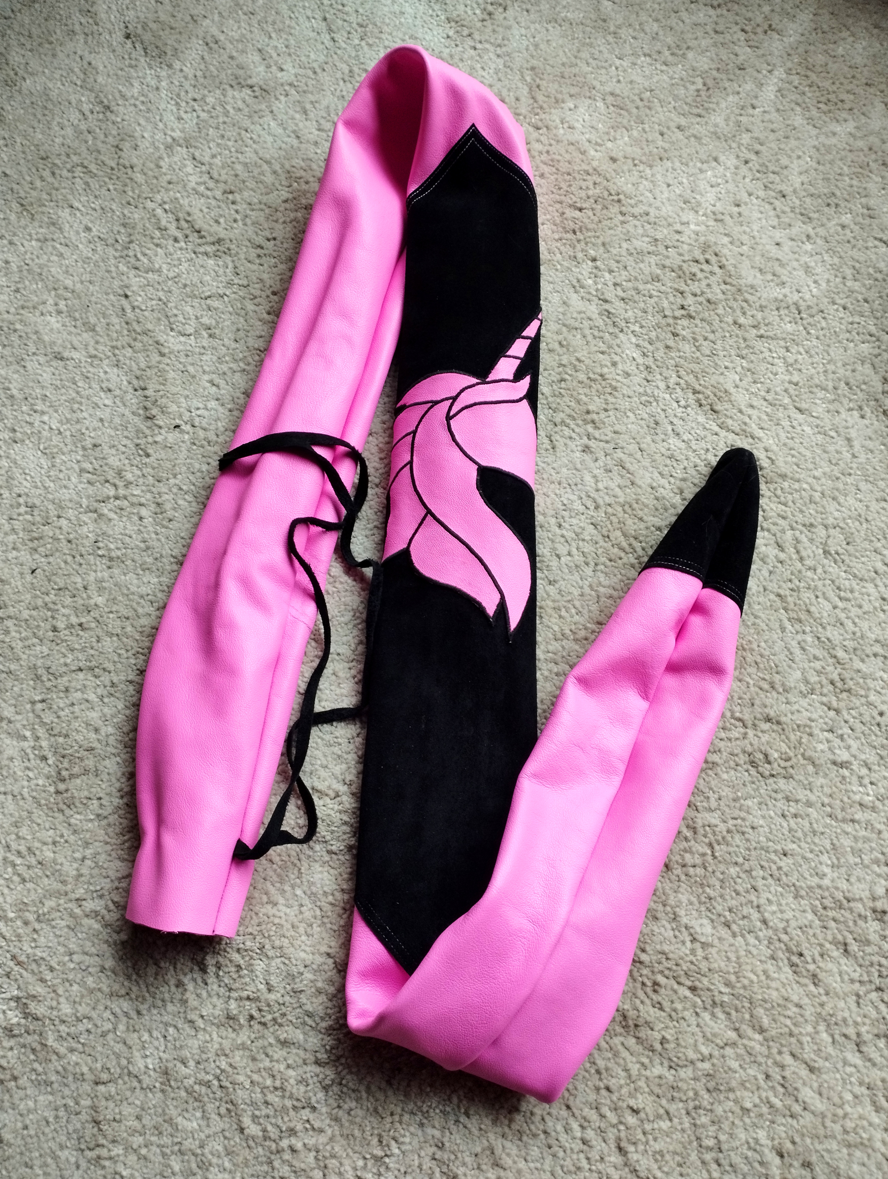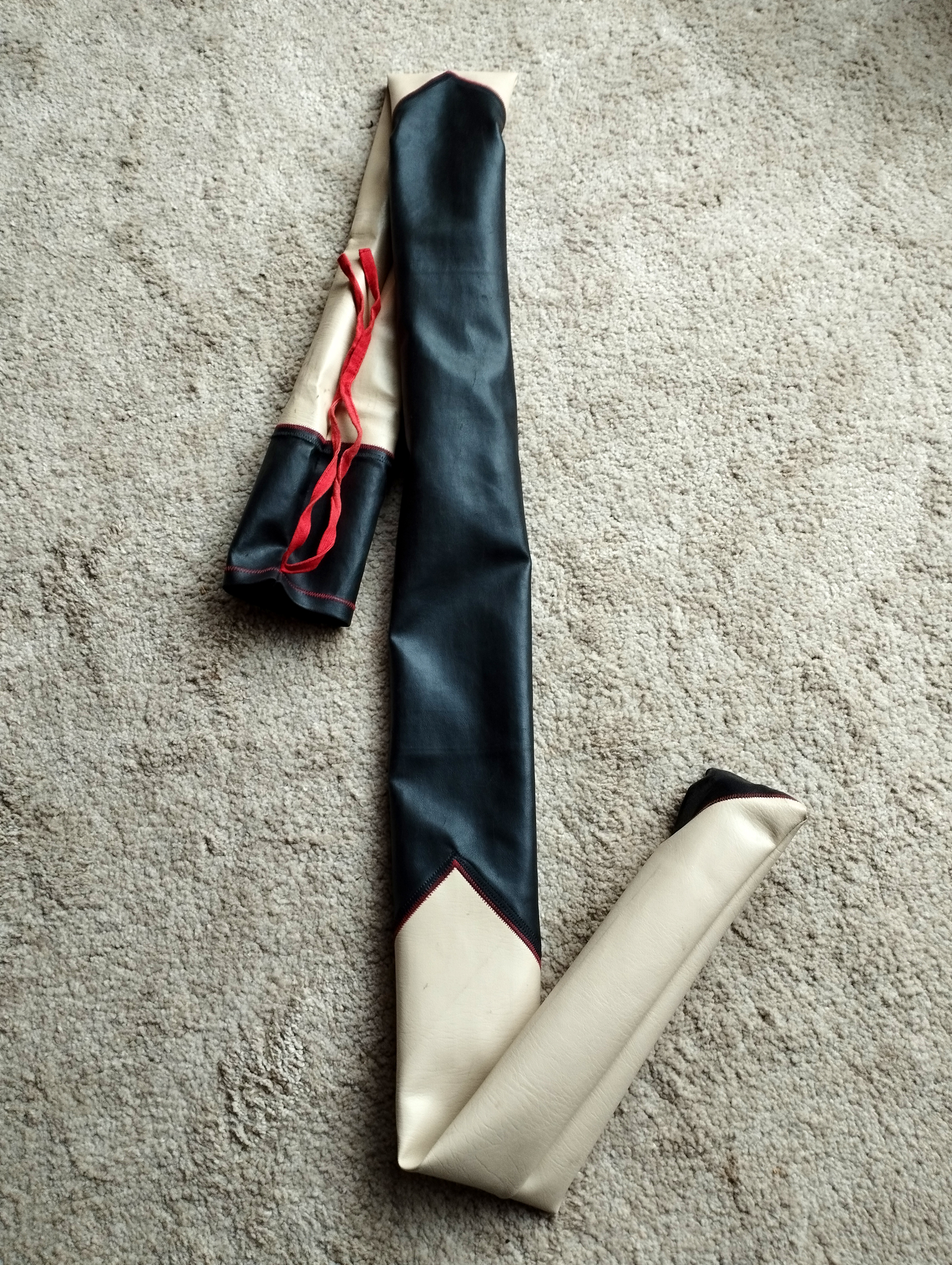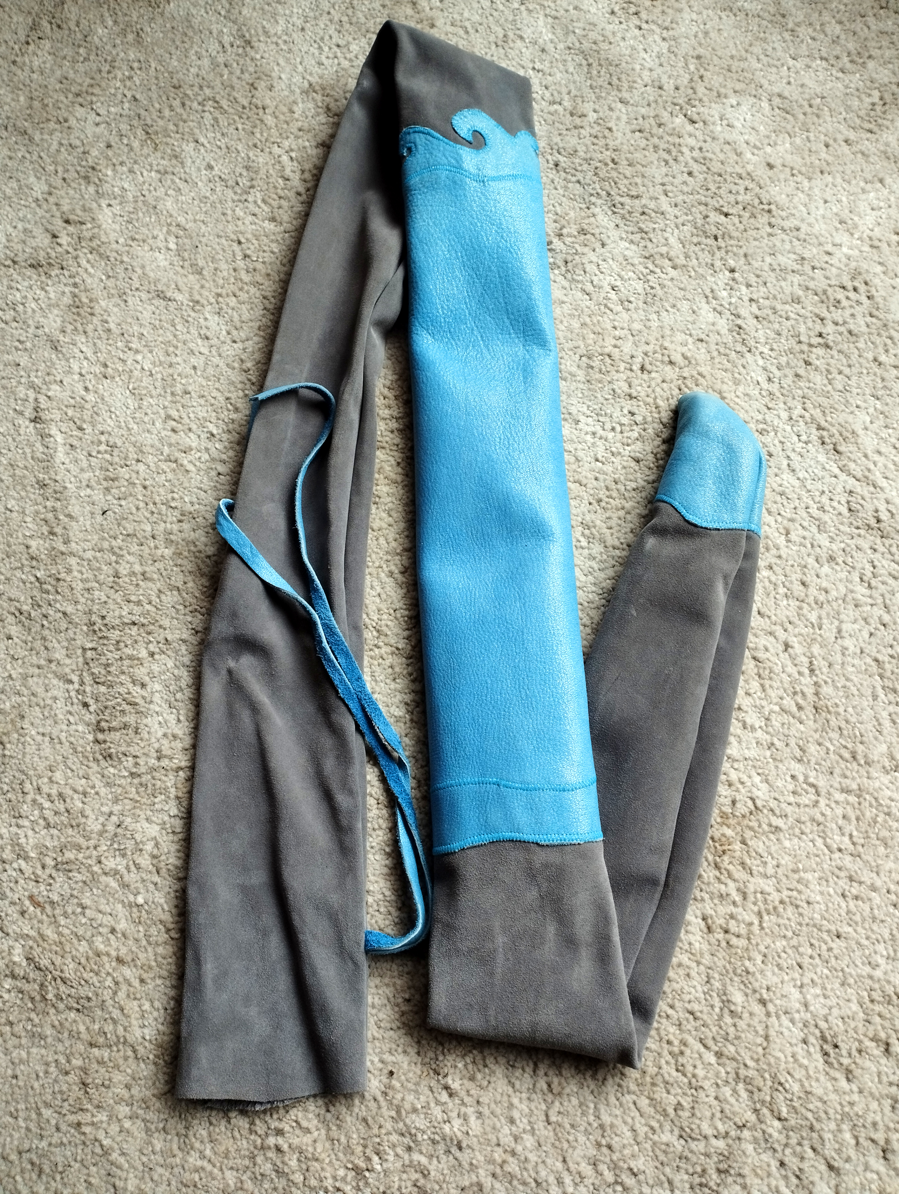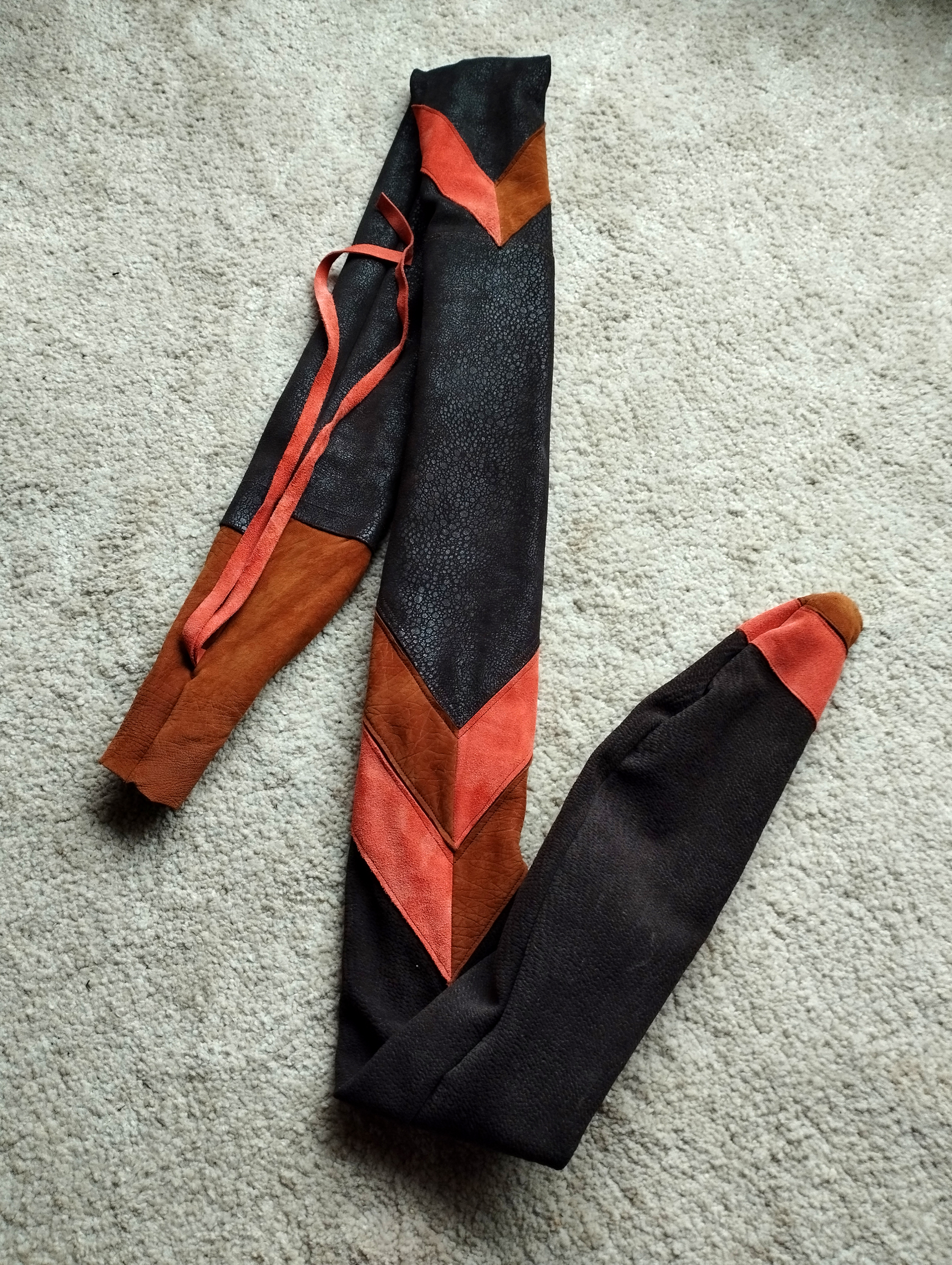 Meine Gattin Ursula macht all unsere Bogensäcke und Sehnenspanner mit Handarbeit.