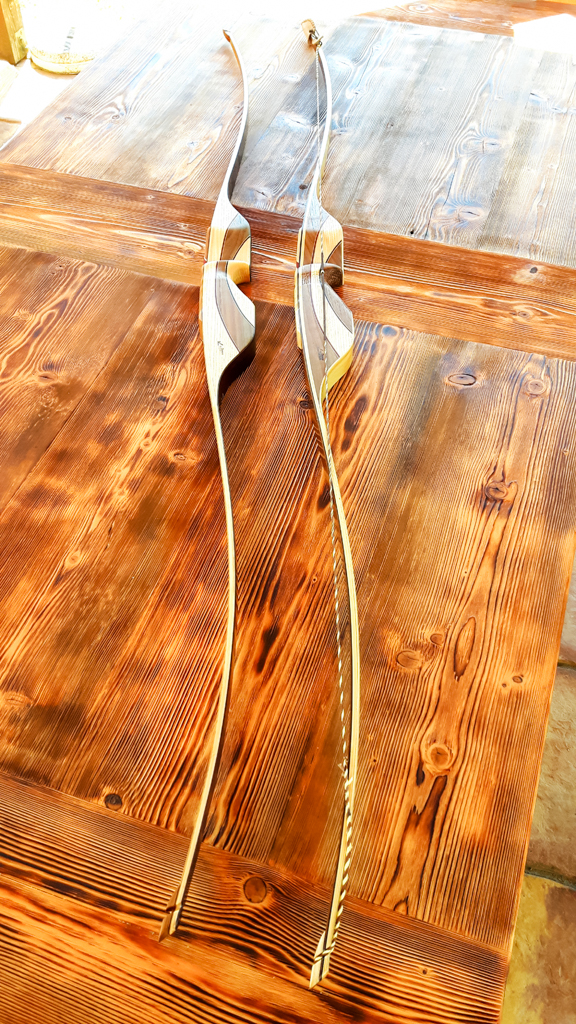 Auch im Bogenbau habe ich mich weiter entwickelt und neue Formen für Langbogen und Bögen entworfen. Der Stil und das Design unterscheiden sich in vielfacher Hinsicht von anderen traditionellen Langbögen. Das Experimentieren mit verschiedenen Materialen im Griffstück und in den Wurfarmen macht extrem viel Spaß und auch wenn manchmal nicht alles so klappt, wie man es sich vorstellt, lernt man mit jedem neuen Bogen dazu. Auch hier gibt es wieder viele neue Bilder dazu.