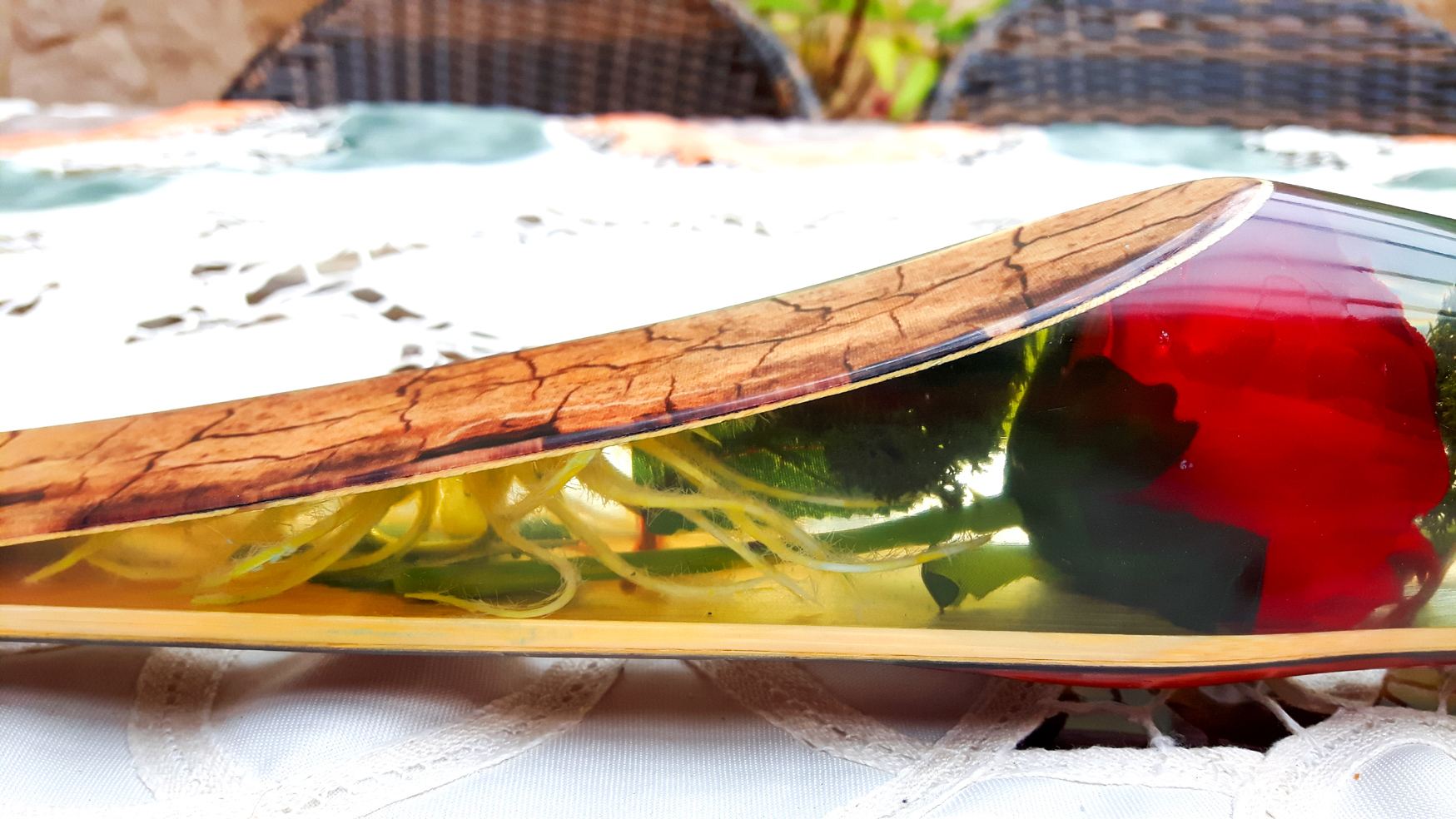 Dadurch konnte ich meine Kreationen von Drechselobjekten immer weiter ausdehnen und fing an kleinere Möbel mit Schnitzereien zu gestalten. Das Farbenspiel der einzelnen Holzarten zusammengeleimt, hat für mich eine besondere Bedeutung in meinen Schaffungen und zieht sich immer wieder durch meine Werke. Neben dem Drechseln begann ich mit kunstvollen Schneidbrettern und Küchen Utensilien aus Holz.