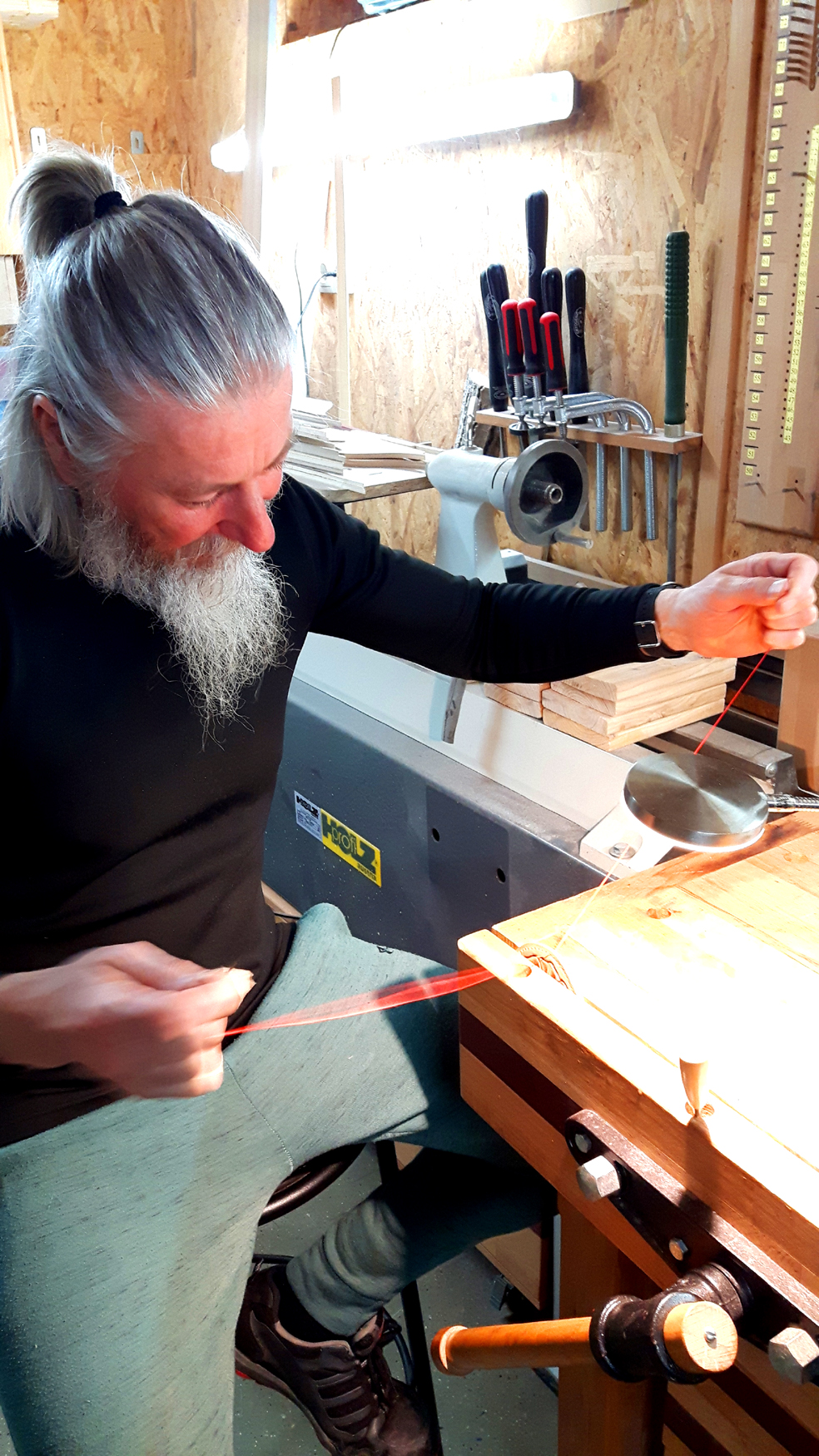 Nach dem ersten Probeschiessen kauften wir uns gleich eine erste Ausrüstung, sprich Bogen, Pfeile, Köcher, Handschuh, etc. und machten seit dem die 3D Bogen Parcour in Wien Umgebung unsicher. Da mich als Hobby Handwerker sofort der Aufbau eines Langbogens interessierte und zufällig gerade Weihnachten war, bekam ich von meiner Tochter mit Mann und meiner Gattin einen Bogen Bau Kurs geschenkt. Rainer Schmid von Schmidbogen hat mir dann bei einem Glaslaminat Bogen Bau Kurs alle wissenswerten Details zum Bogen Bau gelernt.